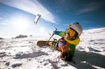 • Erstes Training mit einem Übungs-Kite ohne Ski oder Snowboard. Hierbei versucht der Teilnehmer richtig zu steuern, ein Windfenster zu suchen.