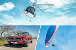 - Beispielerlebnisse: Hubschrauber Rundflug, Ford Mustang Oldtimer fahren, Gleitschirm-Schnupperkurs