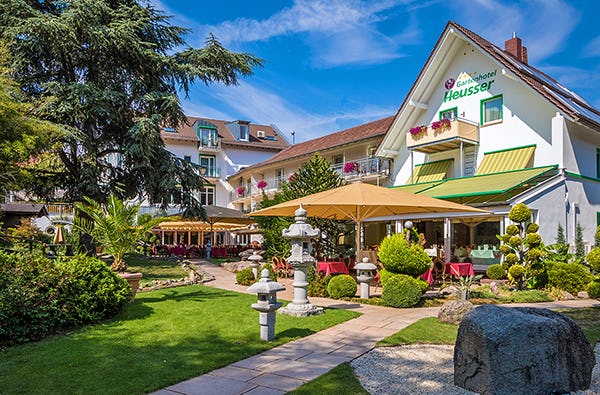 Im schönen Bad Dürkheim an der Weinstraße liegt das Gartenhotel Heusser inmitten einer malerischen, asiatischen Gartenanlage. Hier versprühen gewundene Wasserläufe, ein Teich mit Koi-Karpfen und Wasserschildkröten und ein japanisches Teehaus einen fernöstlichen Charme. In diesem besonderen Ambiente verbringt ihr erholsame Tage und genießt die Verwöhn-Halbpension und den 2000qm großen Wellnessbereich des Gartenhotels mit Innen- und Außenpool.