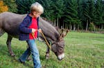 Ih-aaah macht der Esel und wackelt mit seinen Ohren. Da musst auch du auf Anhieb grinsen! Du streichelst dem Unpaarhufer über seine Stehmähne. Das wird dein heutiger Weggenosse auf der Wanderung sein! Doch bevor es losgeht, striegelst Du den Vierhufer, damit er auch schön sauber ist. Dann geht die Eselwanderung auch schon los. Gemeinsam mit deinem Esel entdeckst du das Allgäuer Land. Ihr trottet durch idyllische Wälder und über saftig grüne Wiesen, die, nebenbei bemerkt, sehr lecker für deinen treuen Weggefährten aussehen. Zurück am Eselhof warten schon die flauschigen Hasen und Hunde auf deine Aufmerksamkeit.